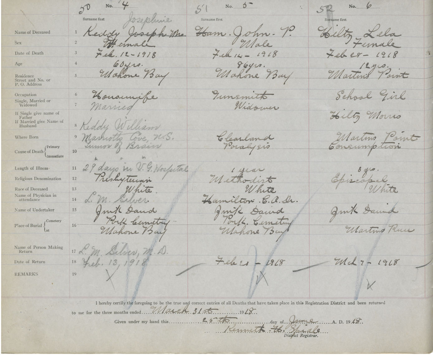 Death Registration: Year: 1918 book: 43 page: 14 number: 50