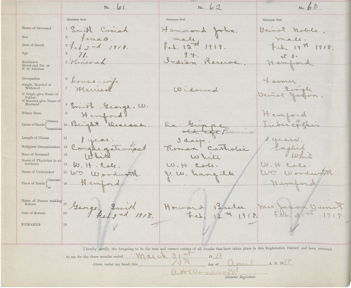 Death Registration: Year: 1918 book: 43 page: 16 number: 61