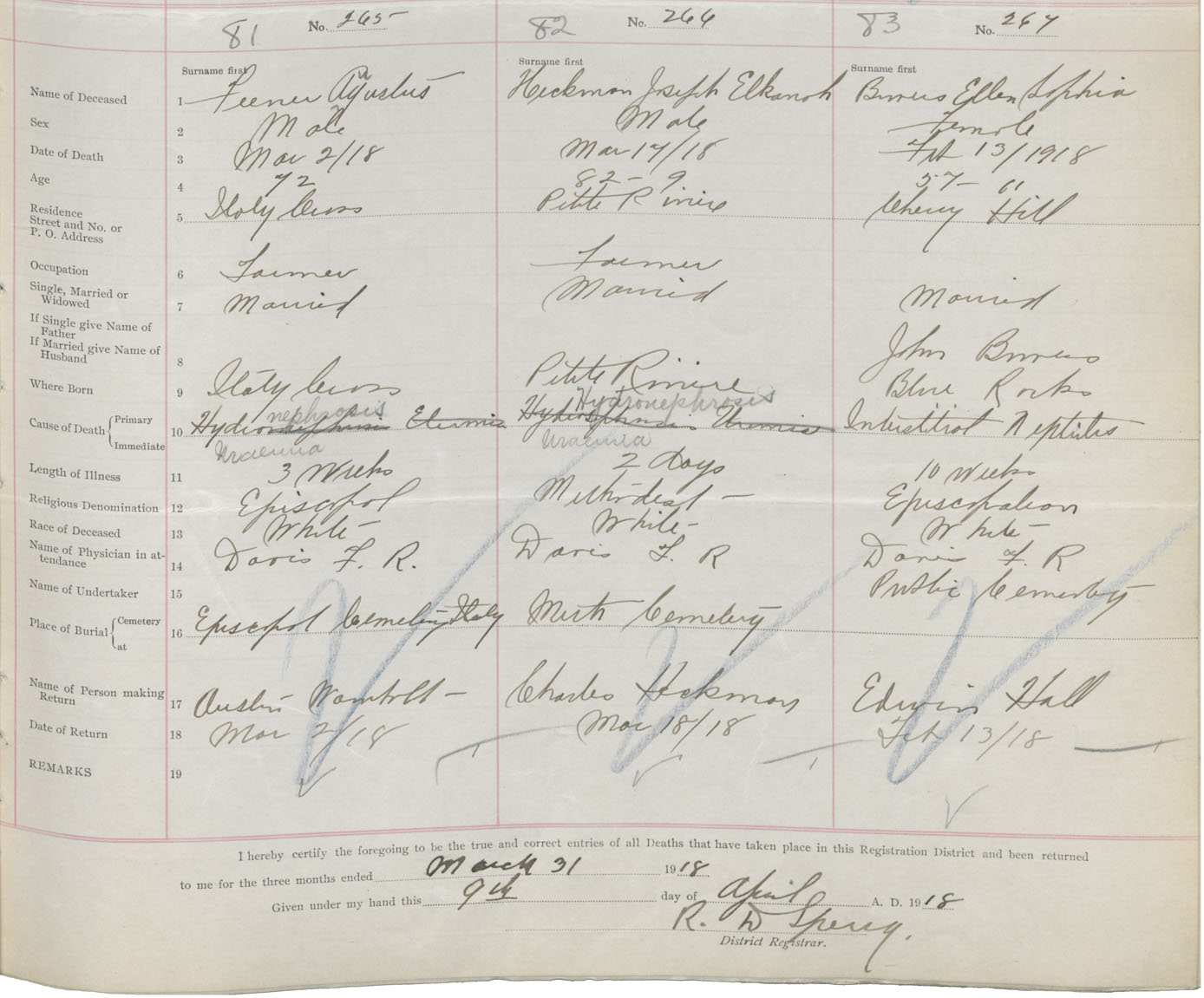 Death Registration: Year: 1918 book: 43 page: 23 number: 81