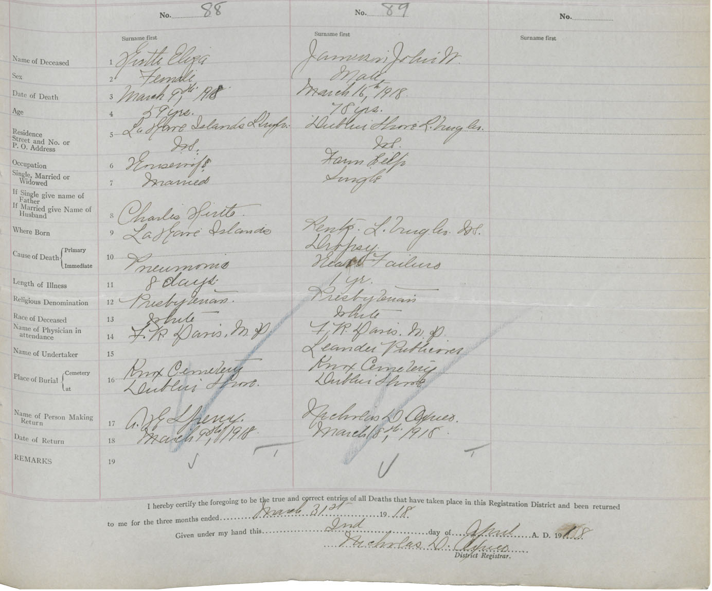 Death Registration: Year: 1918 book: 43 page: 25 number: 88