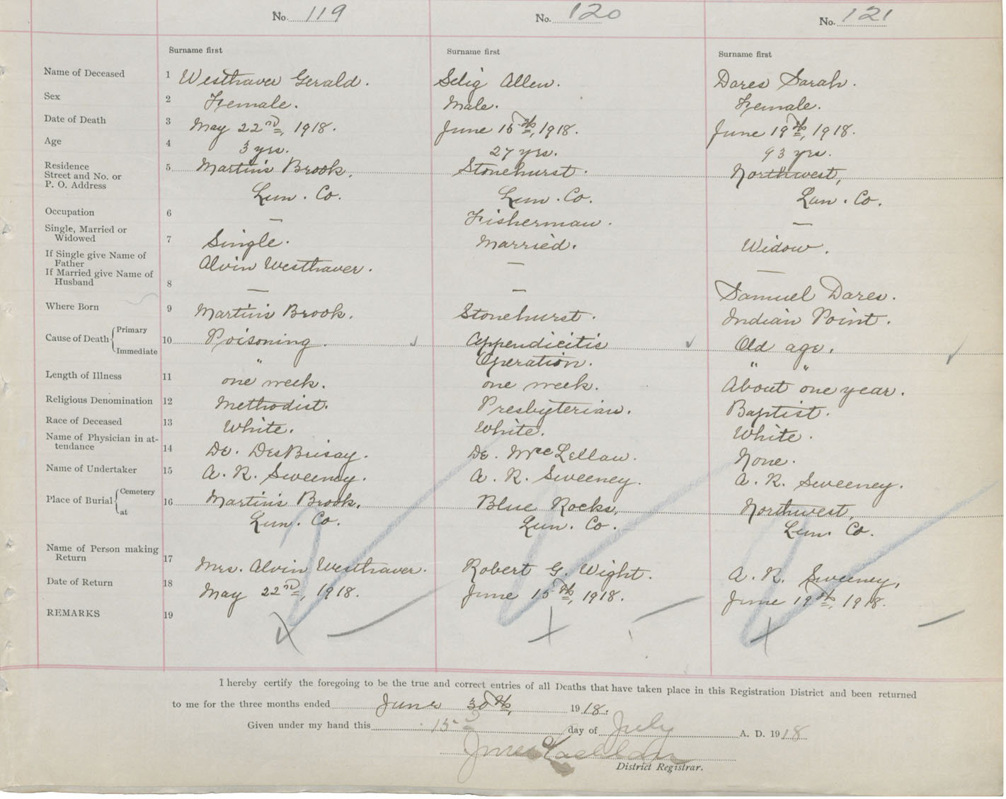 Death Registration: Year: 1918 book: 43 page: 33 number: 121