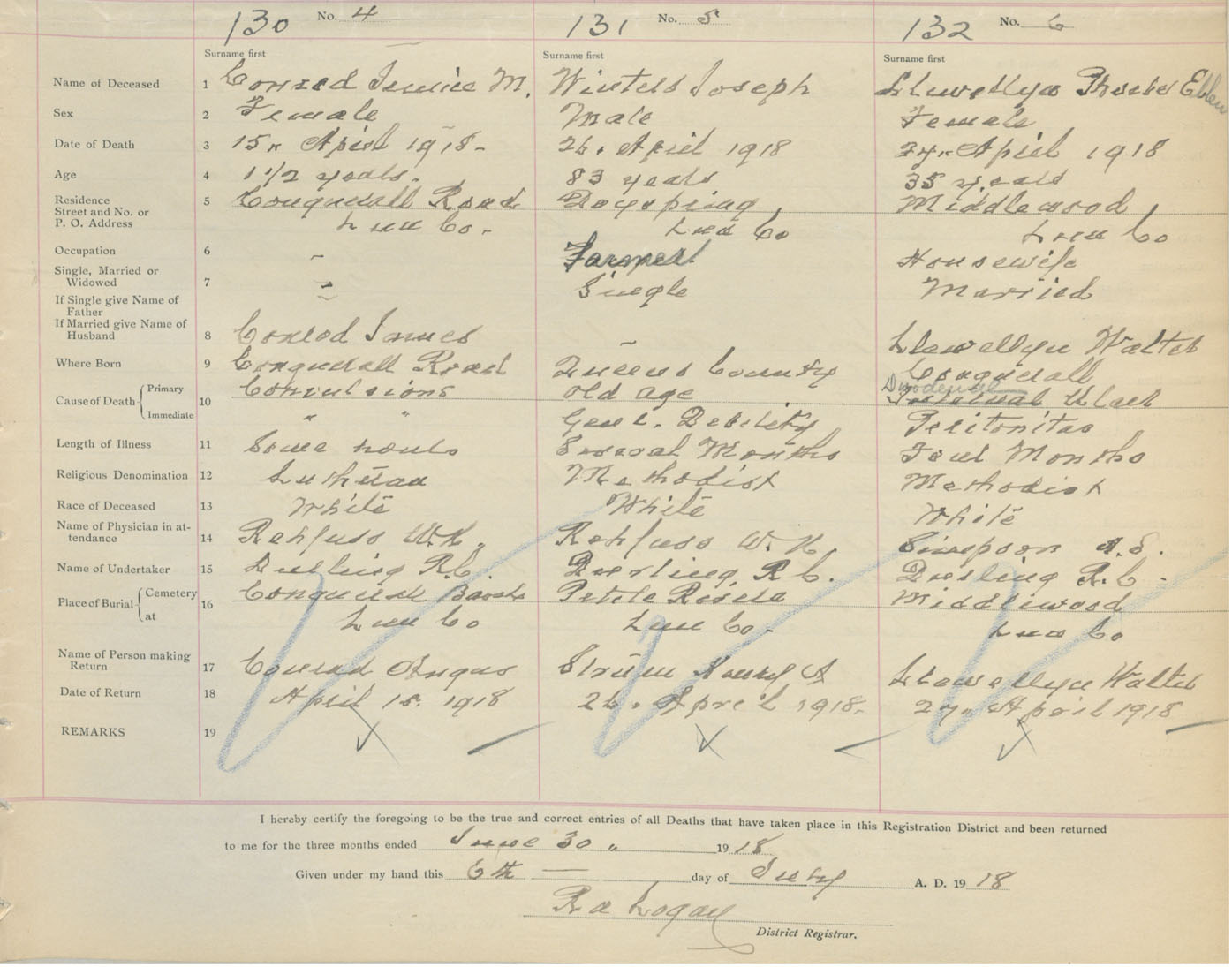 Death Registration: Year: 1918 book: 43 page: 37 number: 132