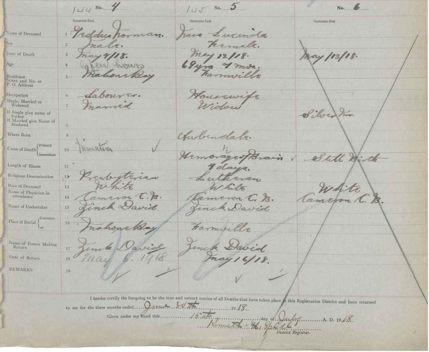 Death Registration: Year: 1918 book: 43 page: 41 number: 145