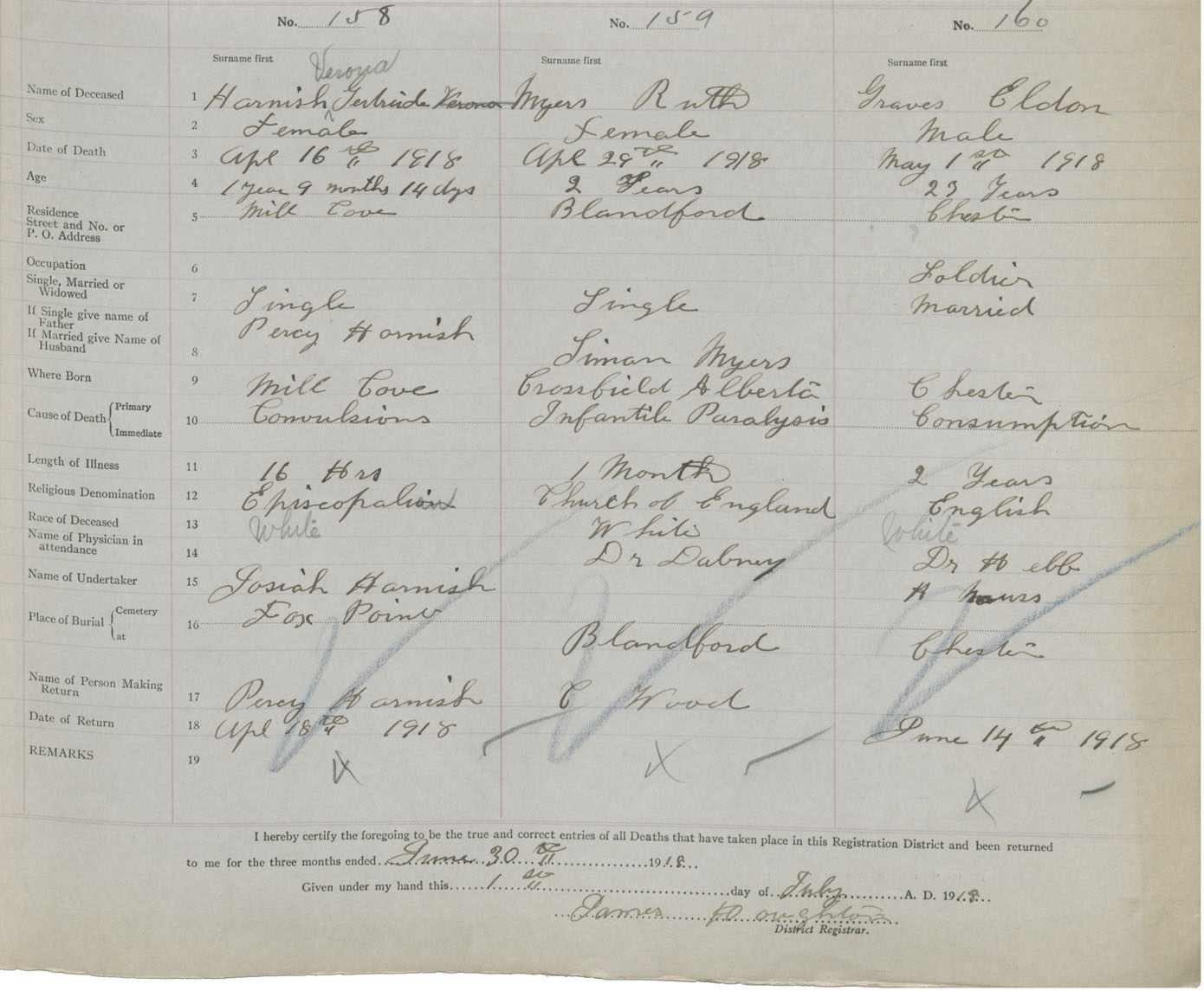 Death Registration: Year: 1918 book: 43 page: 47 number: 160