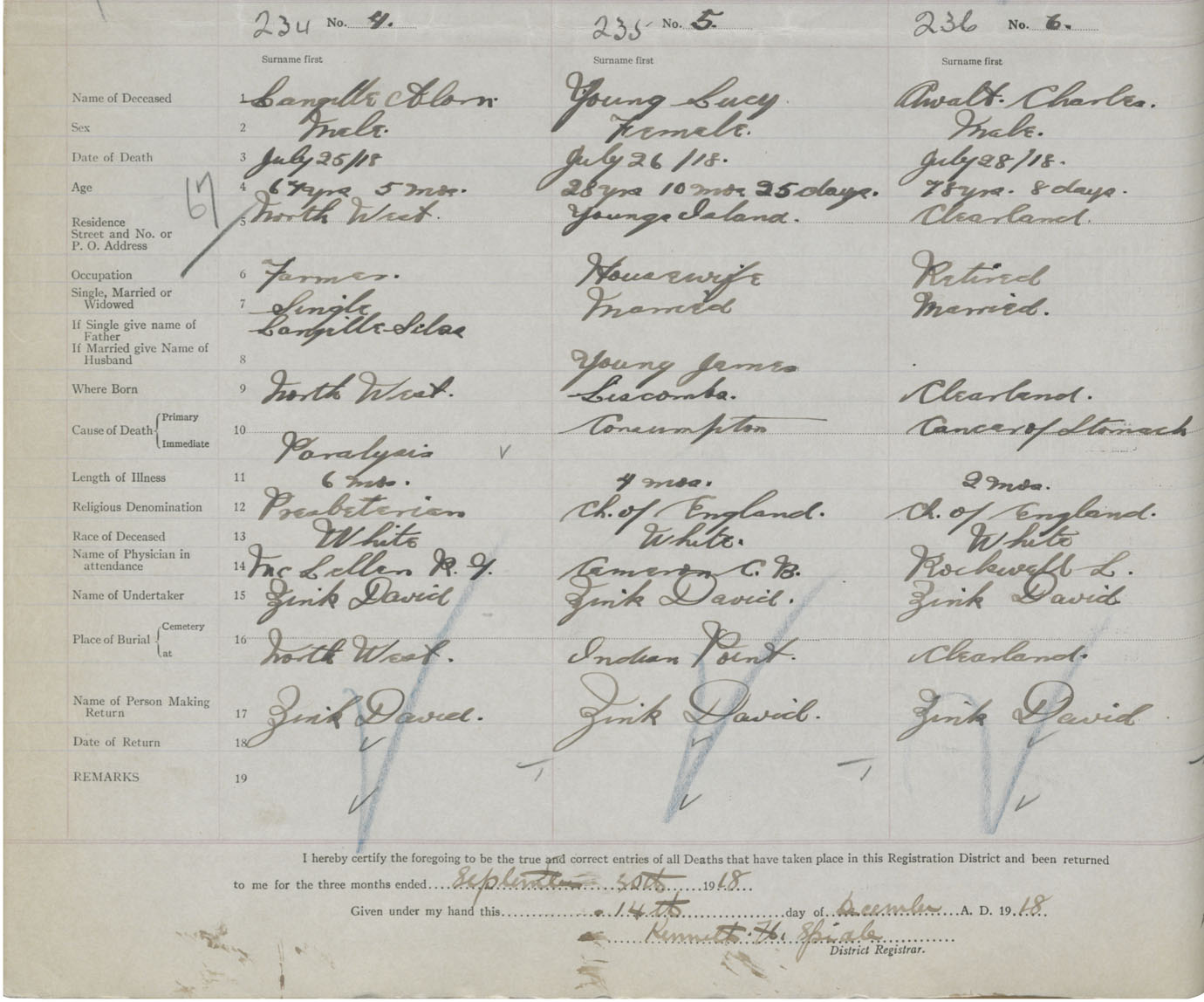Death Registration: Year: 1918 book: 43 page: 70 number: 234