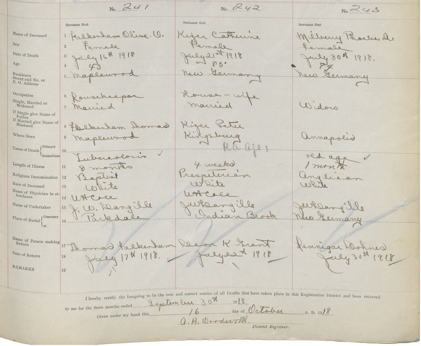 Death Registration: Year: 1918 book: 43 page: 73 number: 241