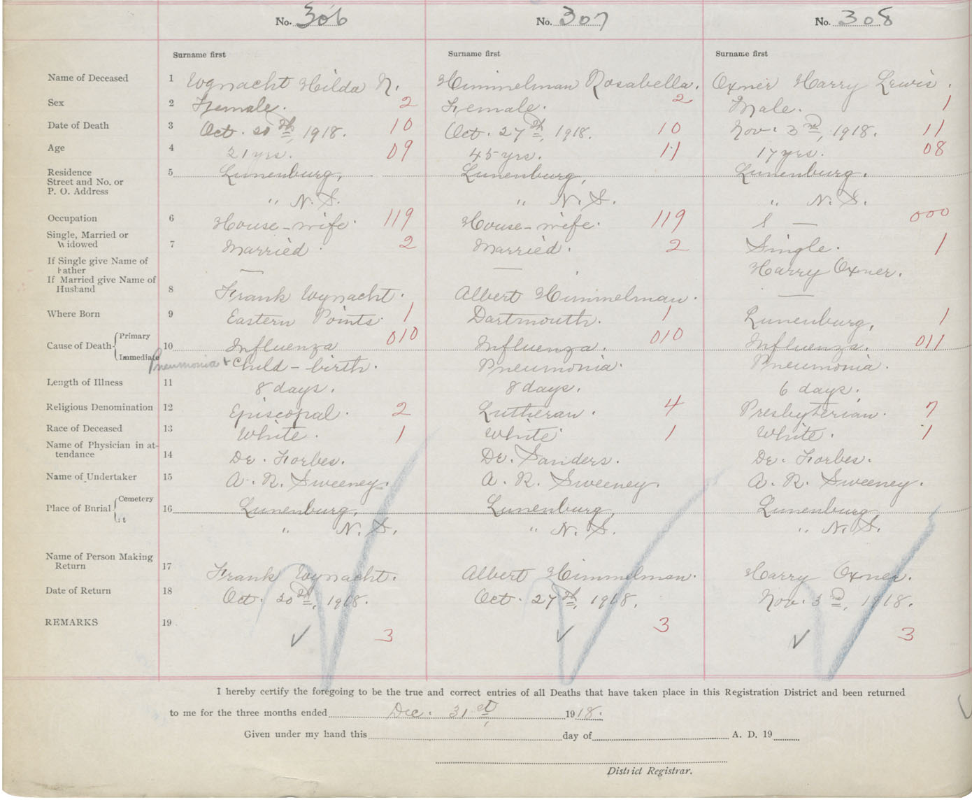 Death Registration: Year: 1918 book: 43 page: 92 number: 306