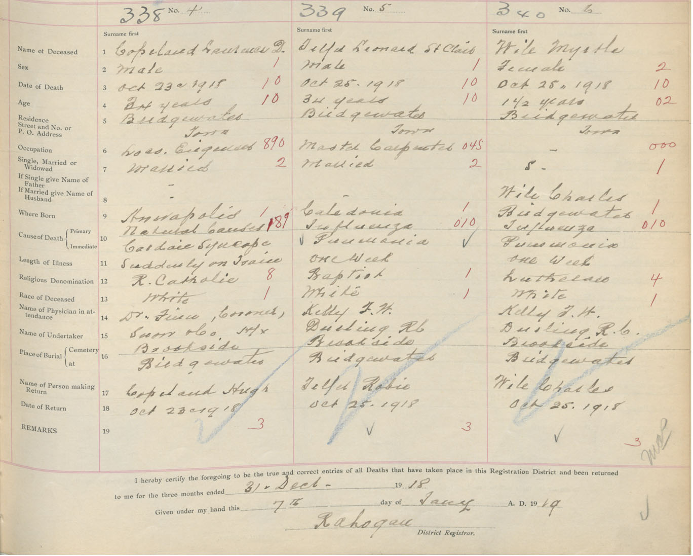 Male Death Registration: Year: 1918 book: 43 page: 99 number: 338