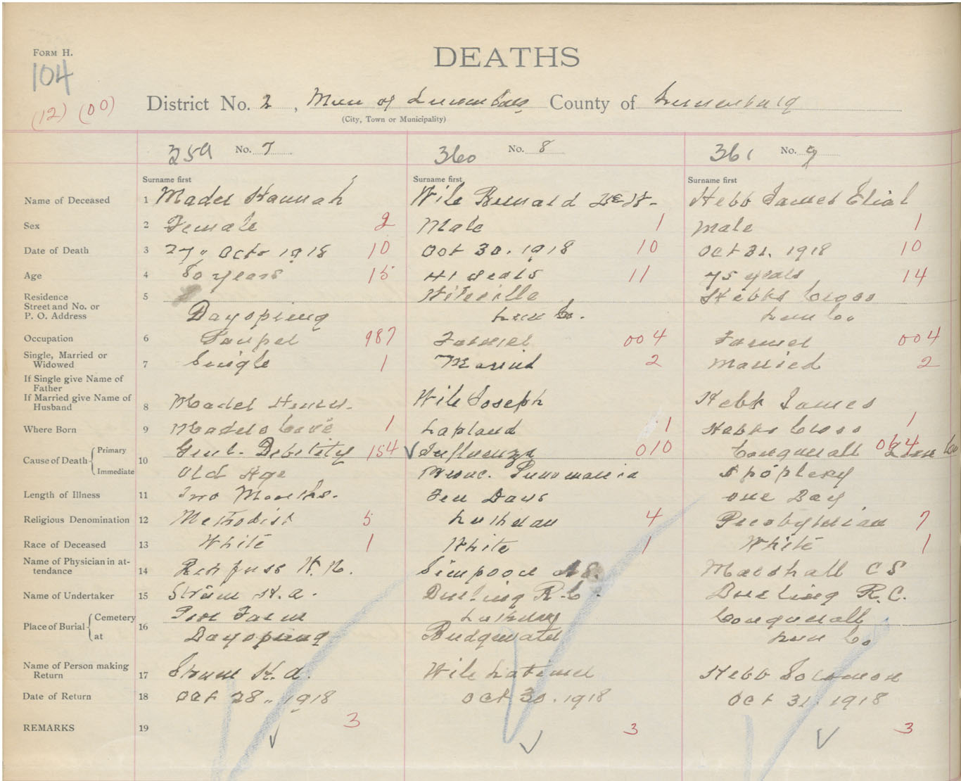 Death Registration: Year: 1918 book: 43 page: 104 number: 359
