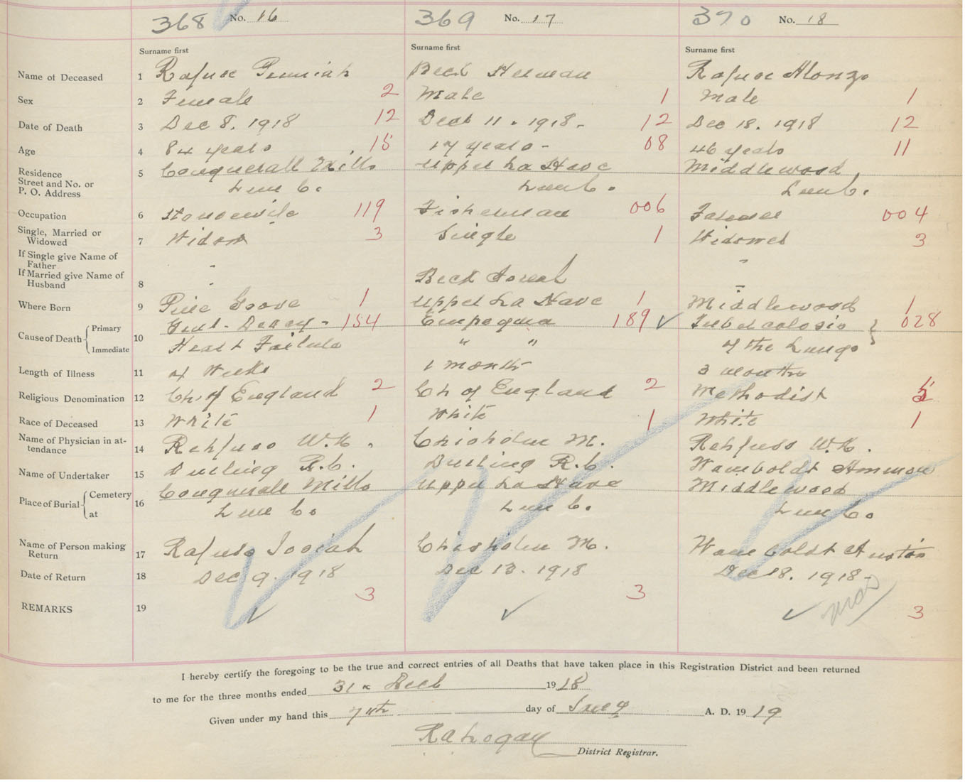 Death Registration: Year: 1918 book: 43 page: 105 number: 368