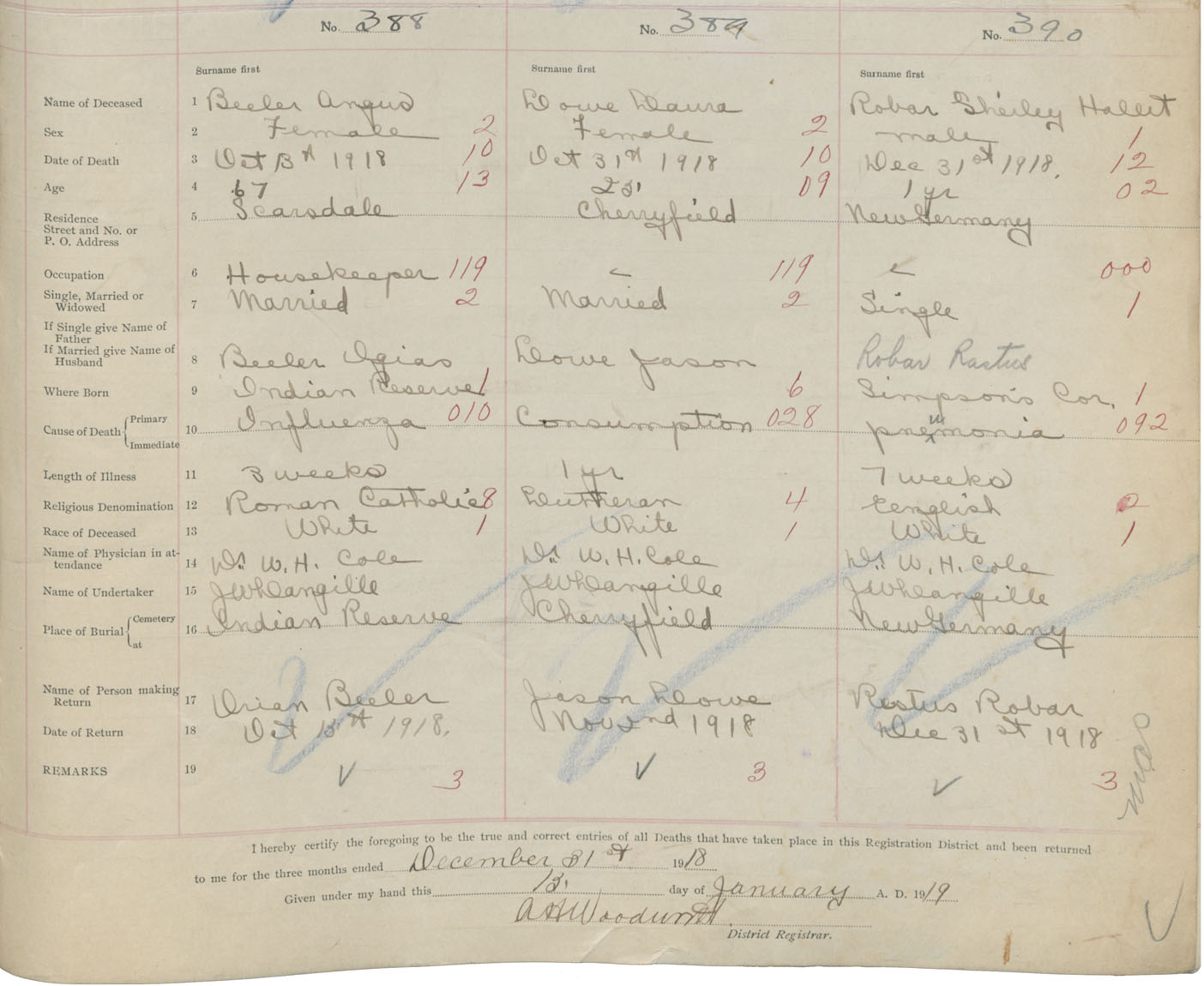 Death Registration: Year: 1918 book: 43 page: 109 number: 388