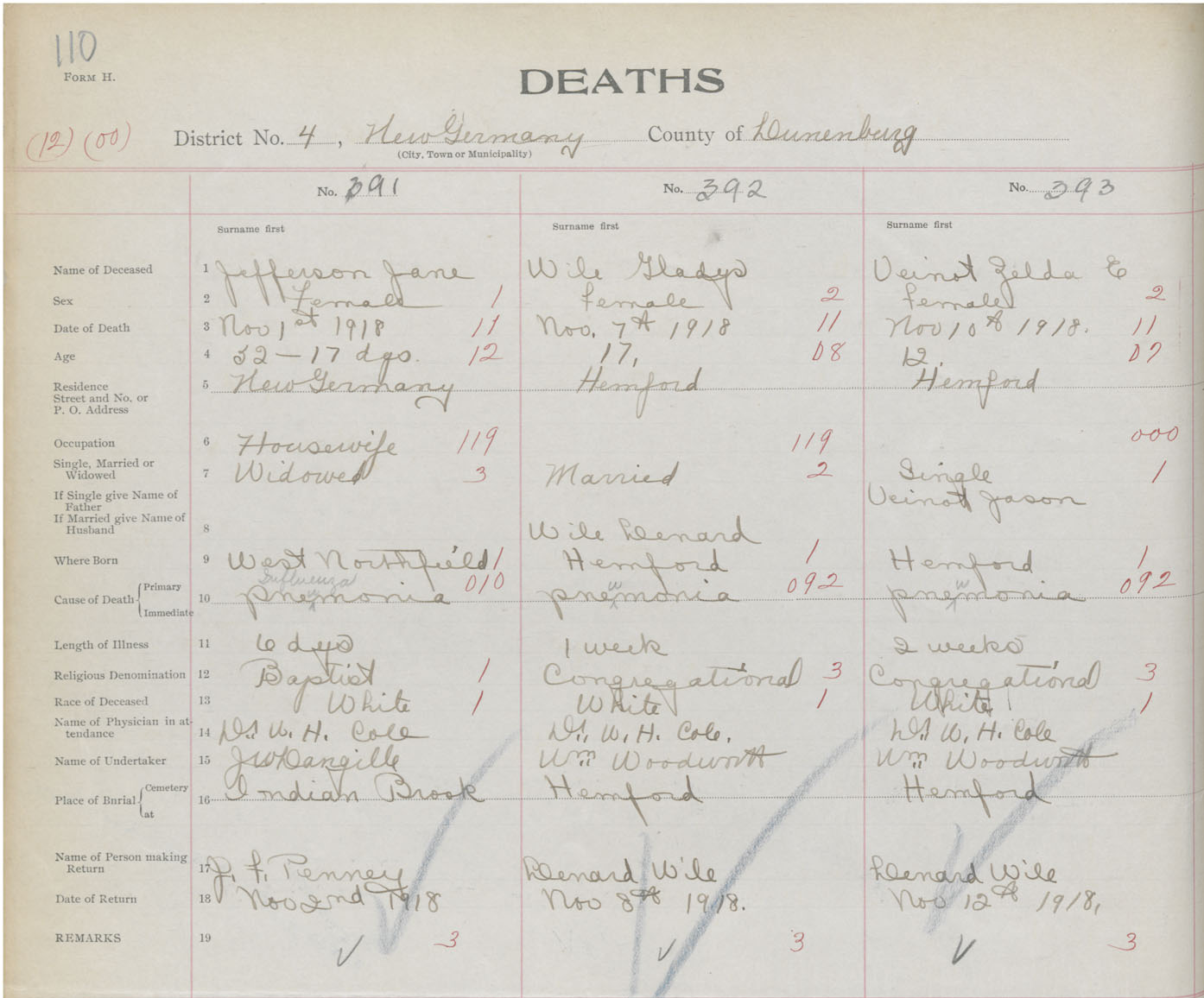 Death Registration: Year: 1918 book: 43 page: 110 number: 391