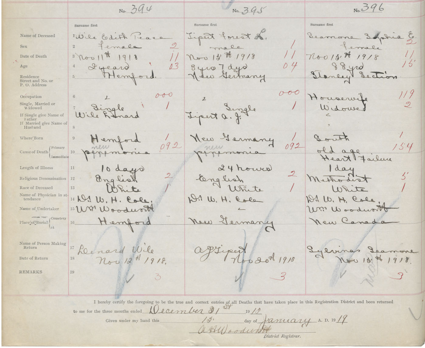 Death Registration: Year: 1918 book: 43 page: 110 number: 394