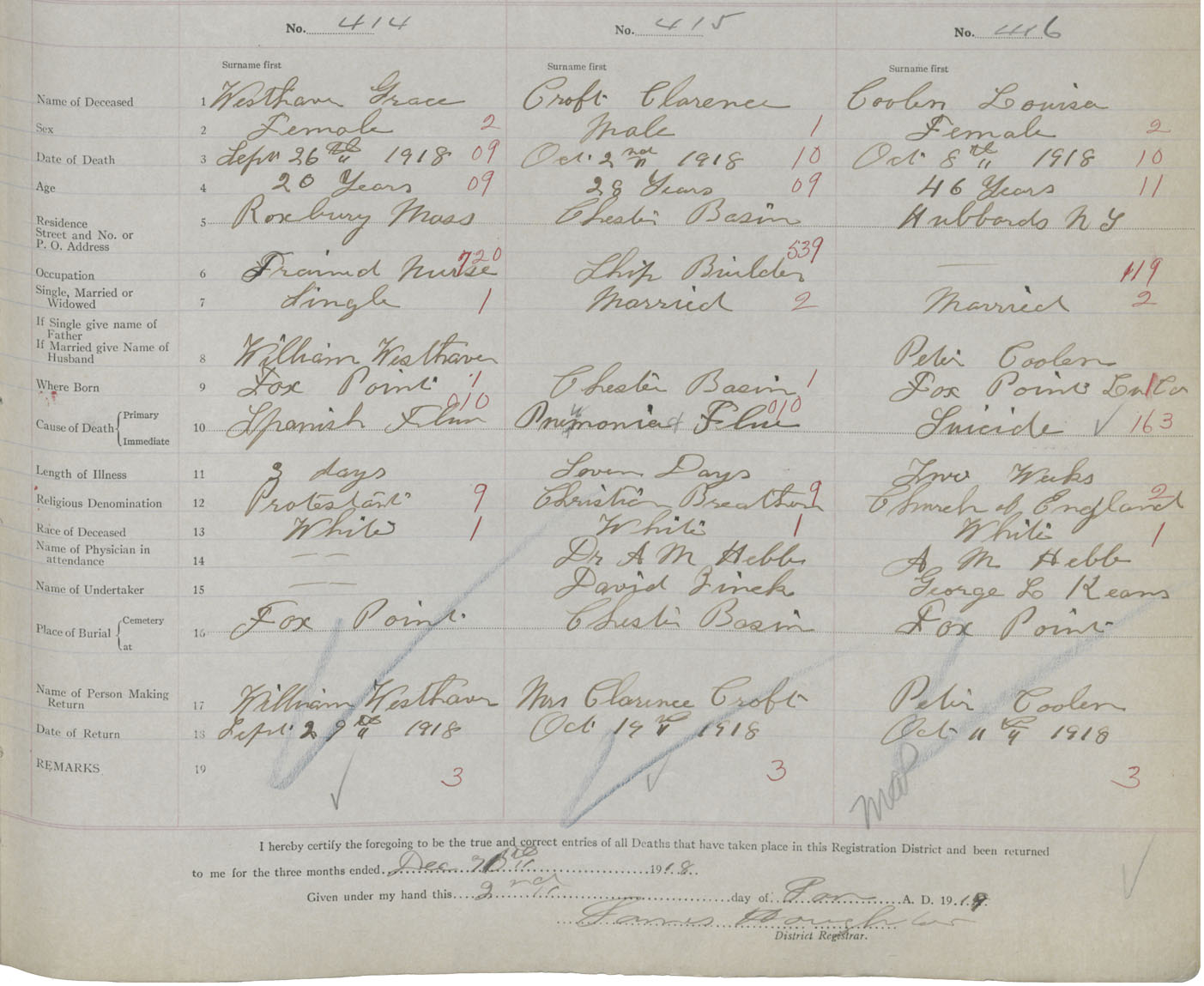 Death Registration: Year: 1918 book: 43 page: 117 number: 414