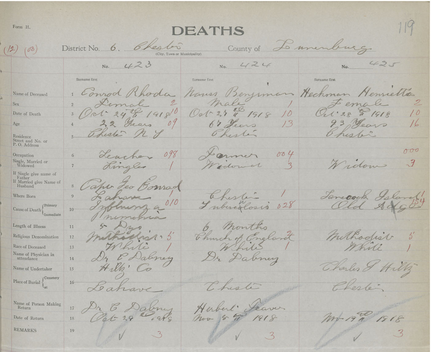Death Registration: Year: 1918 book: 43 page: 119 number: 423