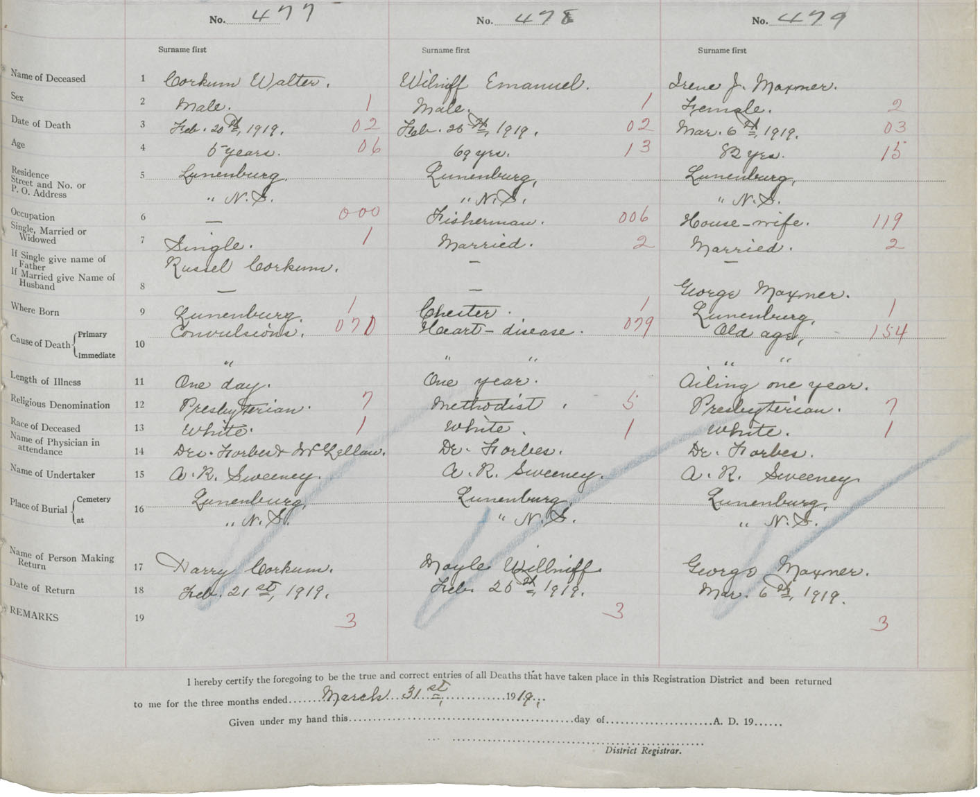 Death Registration: Year: 1919 book: 43 page: 133 number: 479