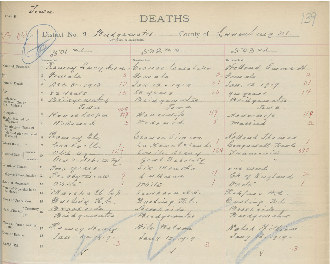 Death Registration: Year: 1918 book: 43 page: 139 number: 501