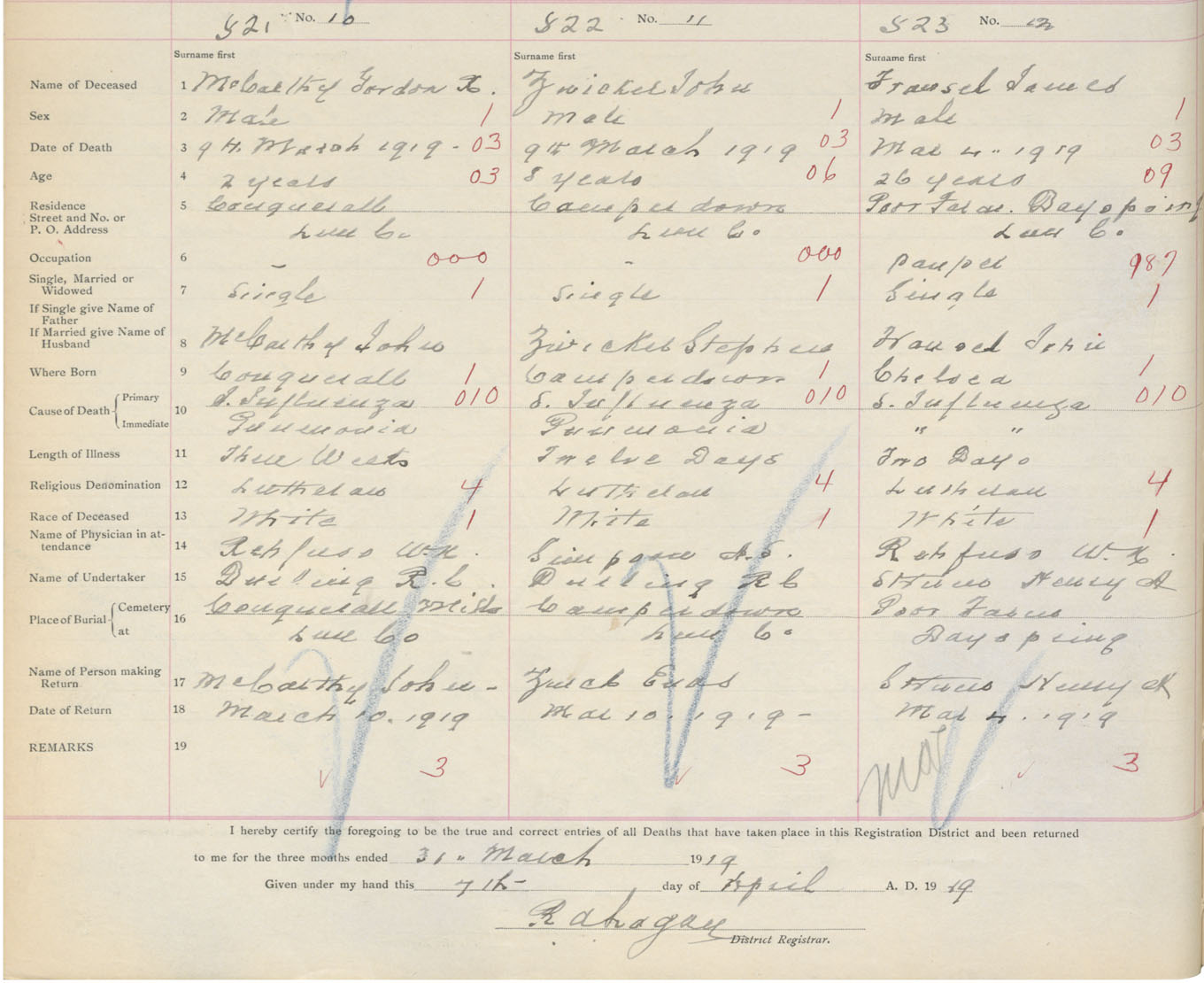 Death Registration: Year: 1919 book: 43 page: 20140 number: 521