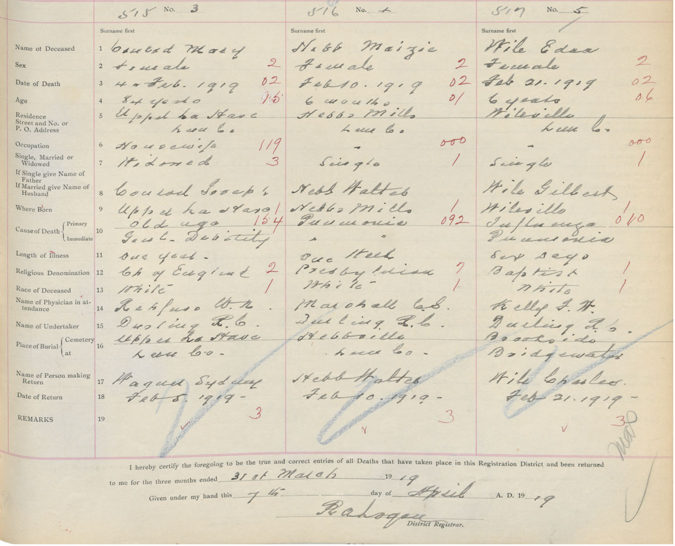 Death Registration: Year: 1919 book: 43 page: 141 number: 515
