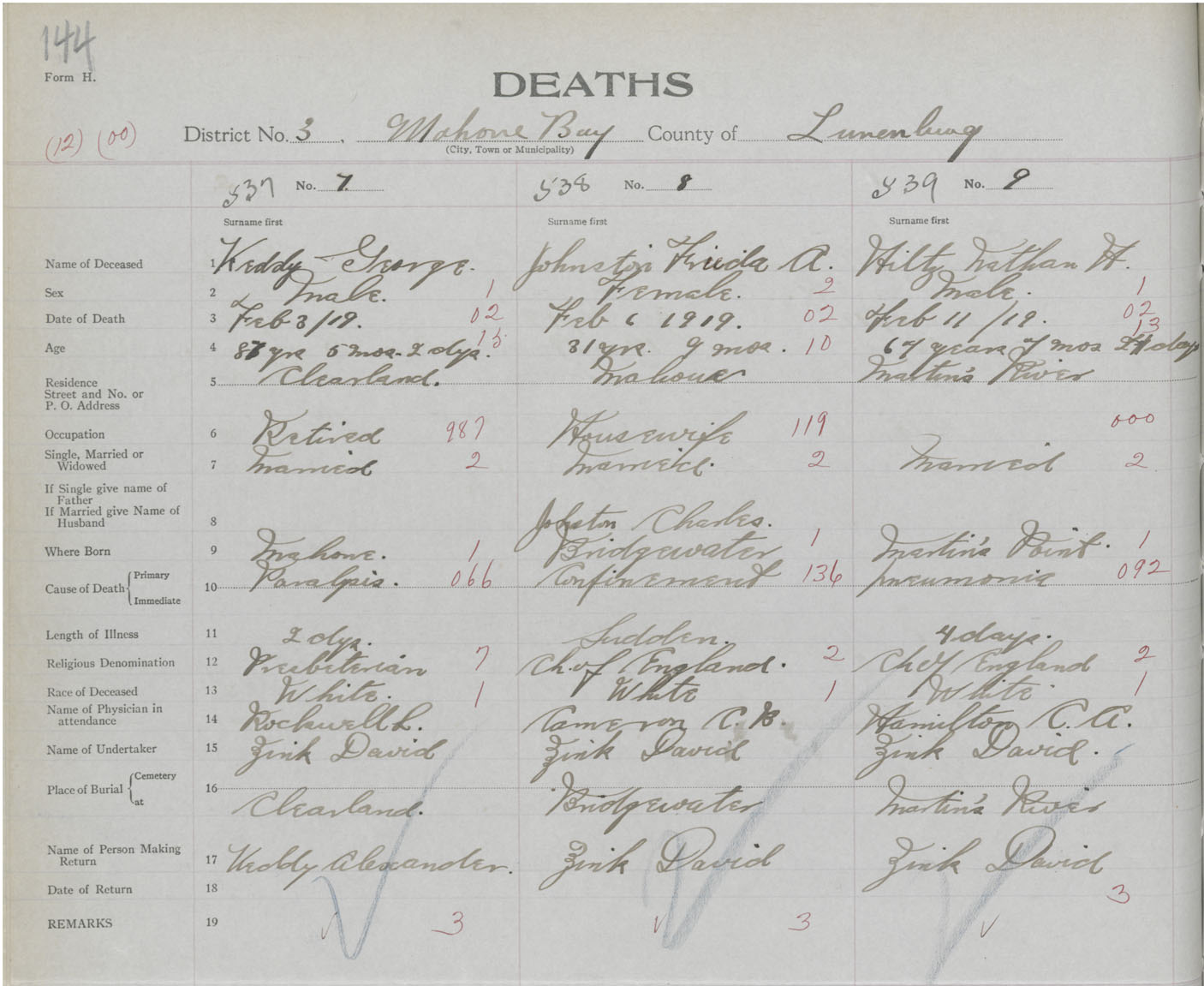 Death Registration: Year: 1919 book: 43 page: 144 number: 537