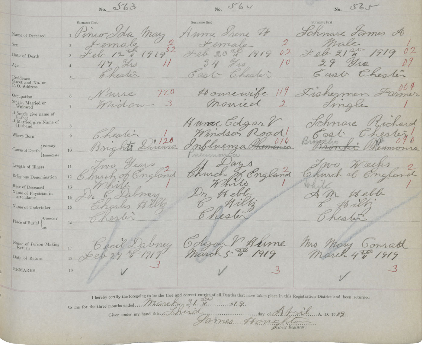 Death Registration: Year: 1919 book: 43 page: 151 number: 563