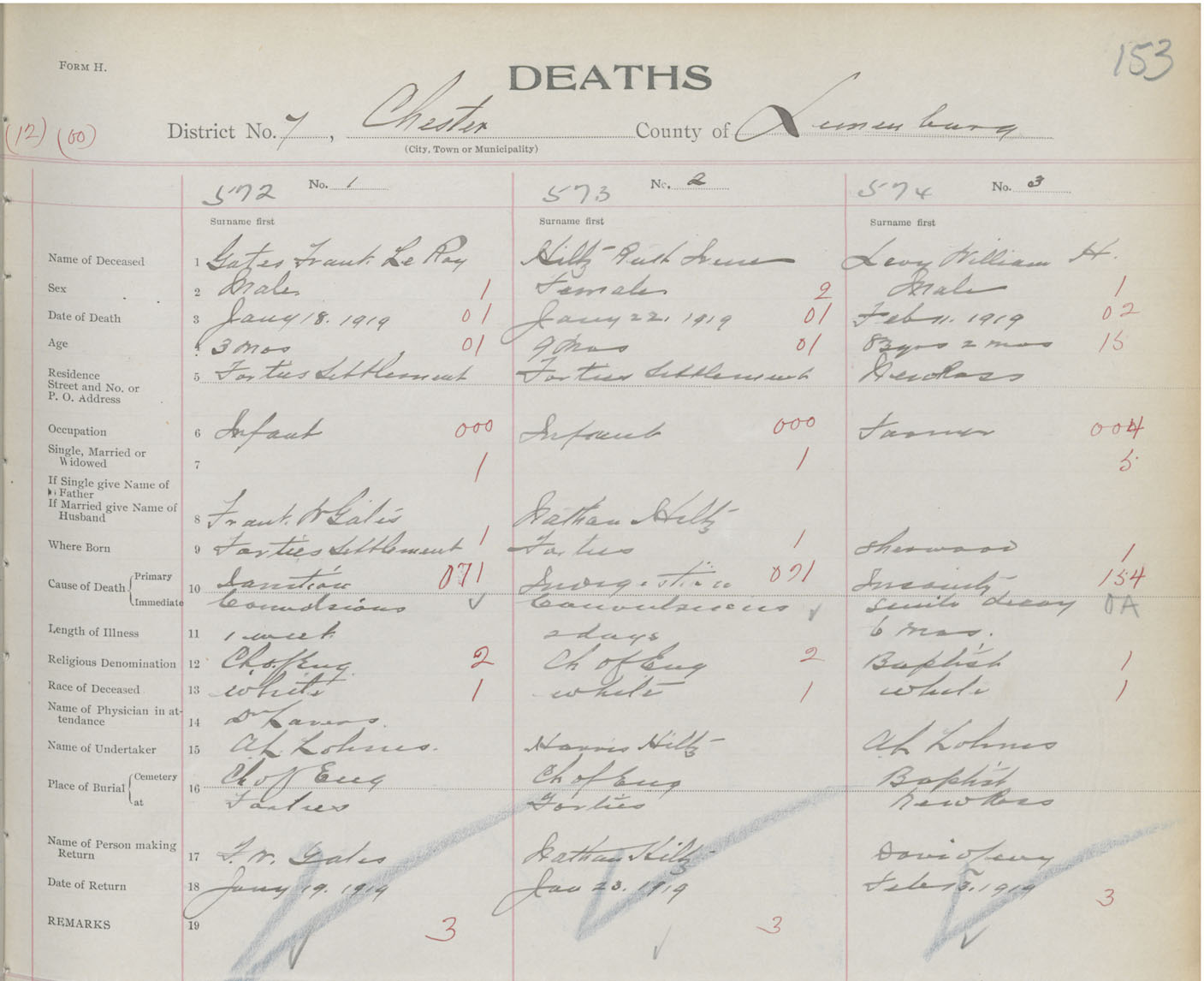 Death Registration: Year: 1919 book: 43 page: 153 number: 574