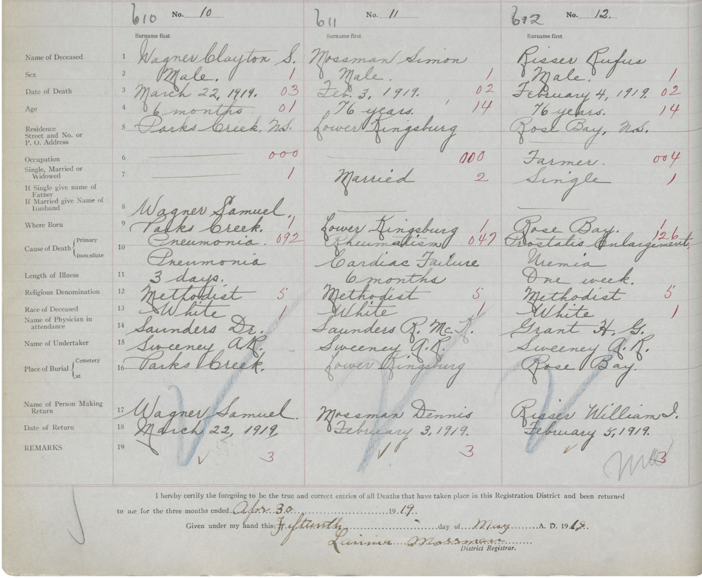 Death Registration: Year: 1919 book: 43 page: 162 number: 612