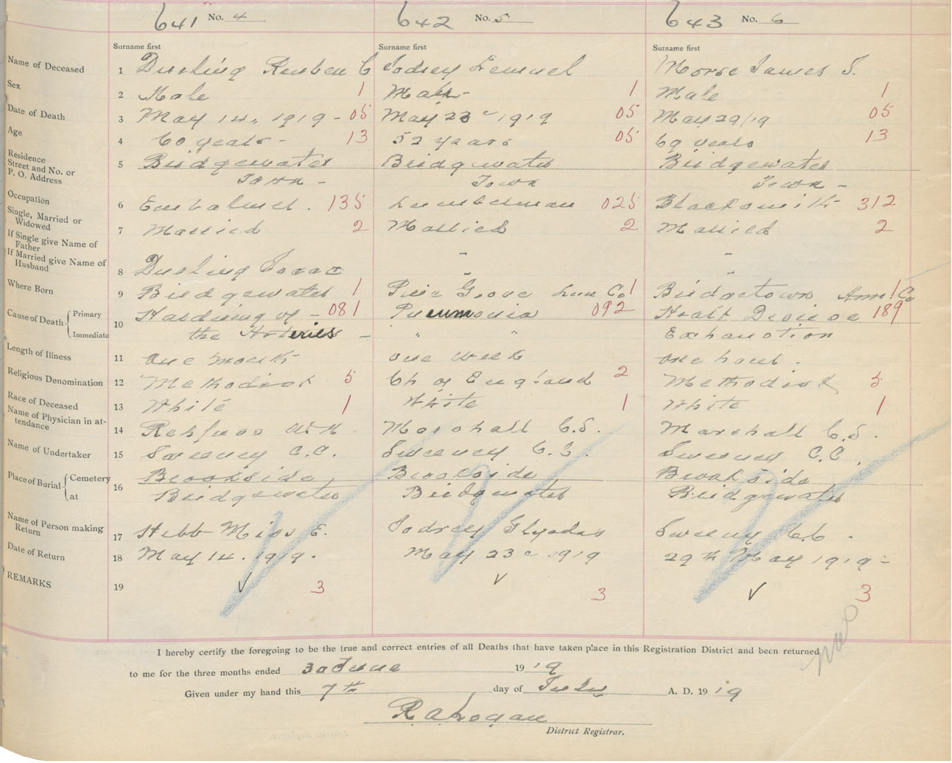 Death Registration: Year: 1919 book: 43 page: 171 number: 643