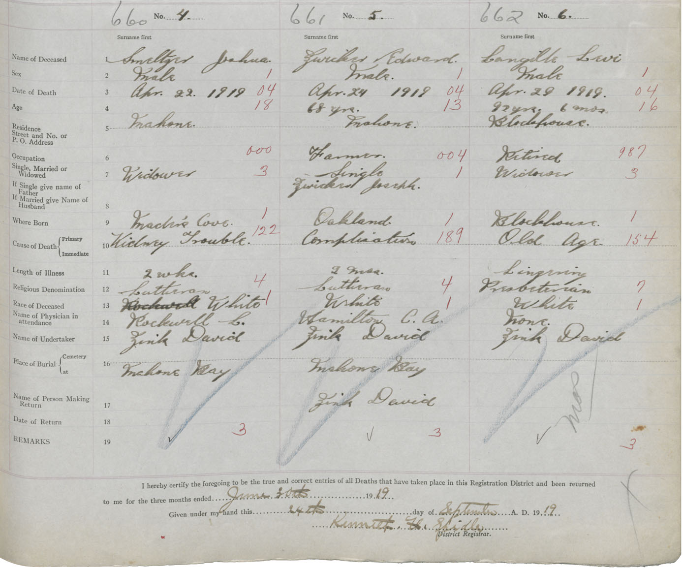 Death Registration: Year: 1919 book: 43 page: 177 number: 662