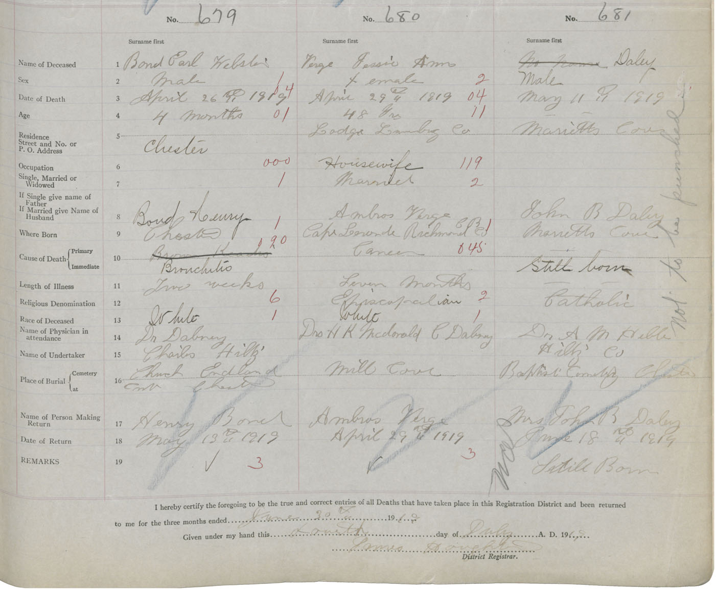 Death Registration: Year: 1919 book: 43 page: 181 number: 681