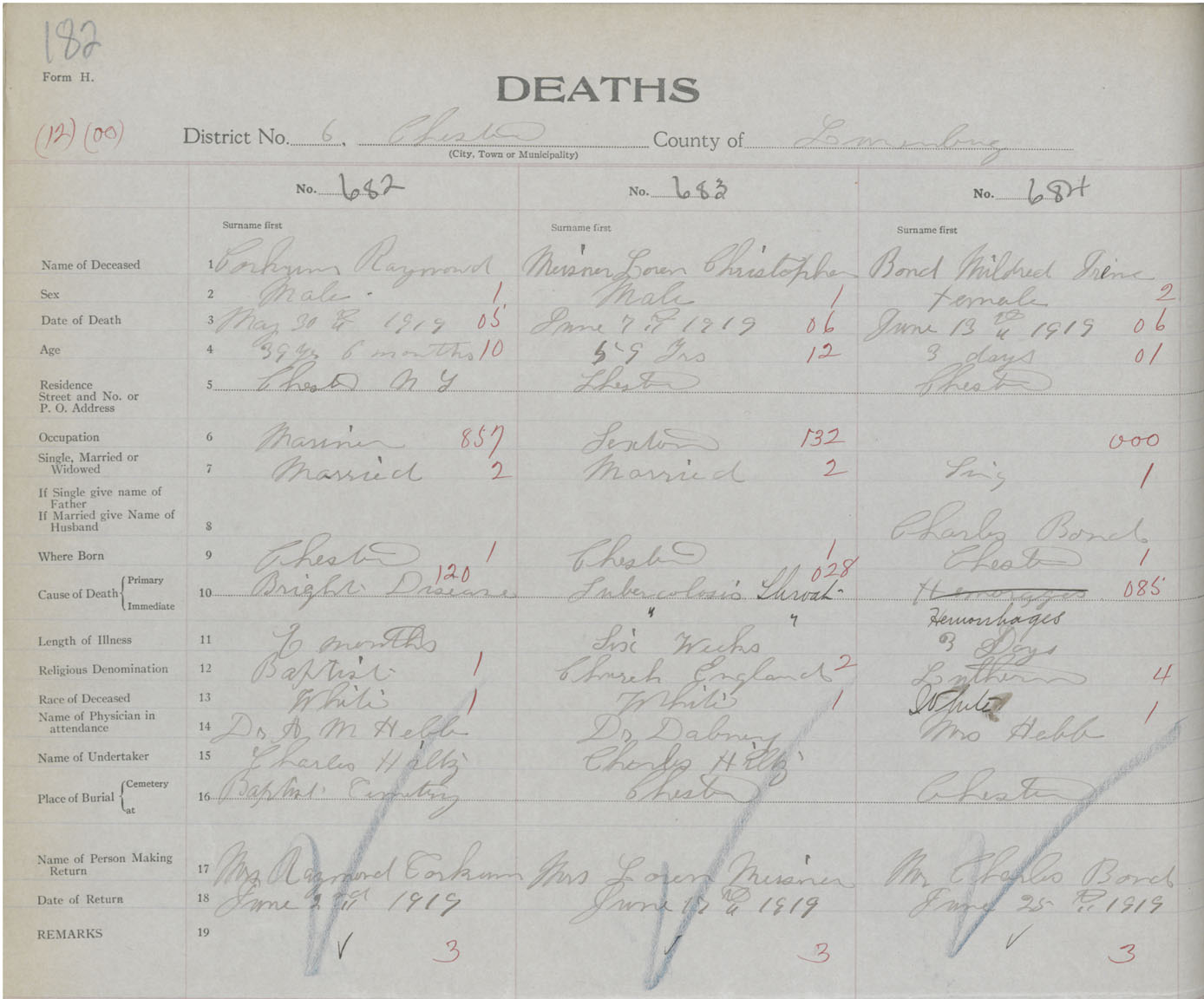 Death Registration: Year: 1919 book: 43 page: 182 number: 684