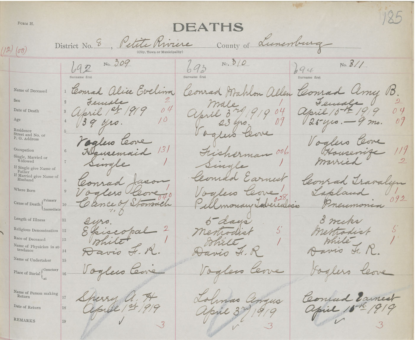 Death Registration: Year: 1919 book: 43 page: 185 number: 694