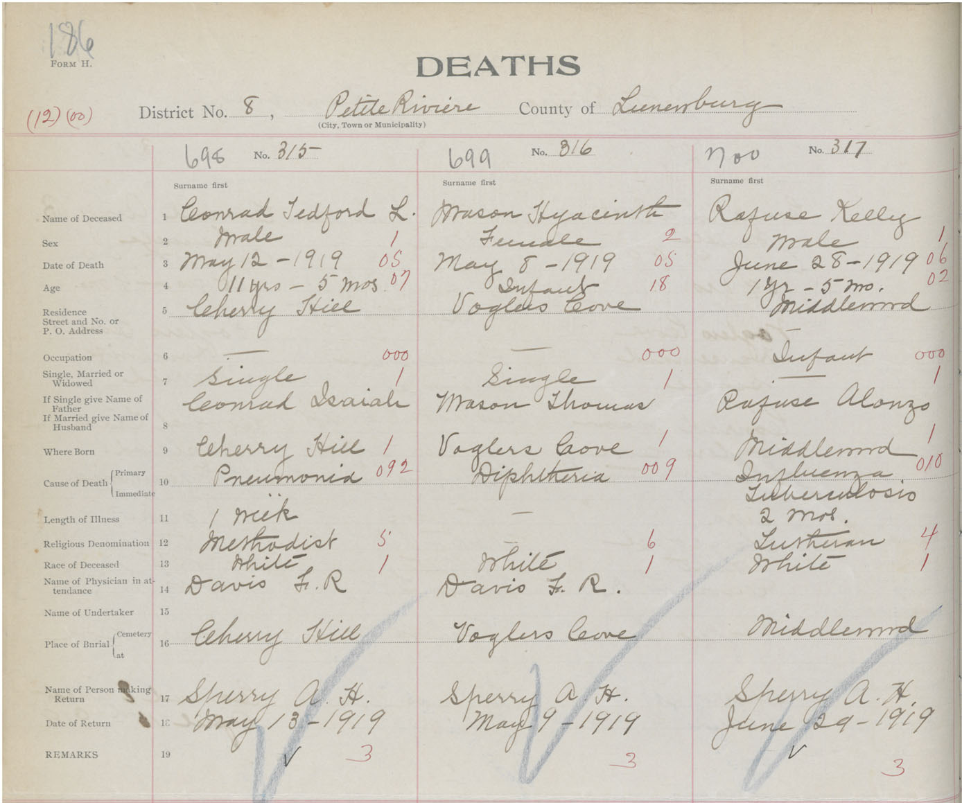 Death Registration: Year: 1919 book: 43 page: 186 number: 700