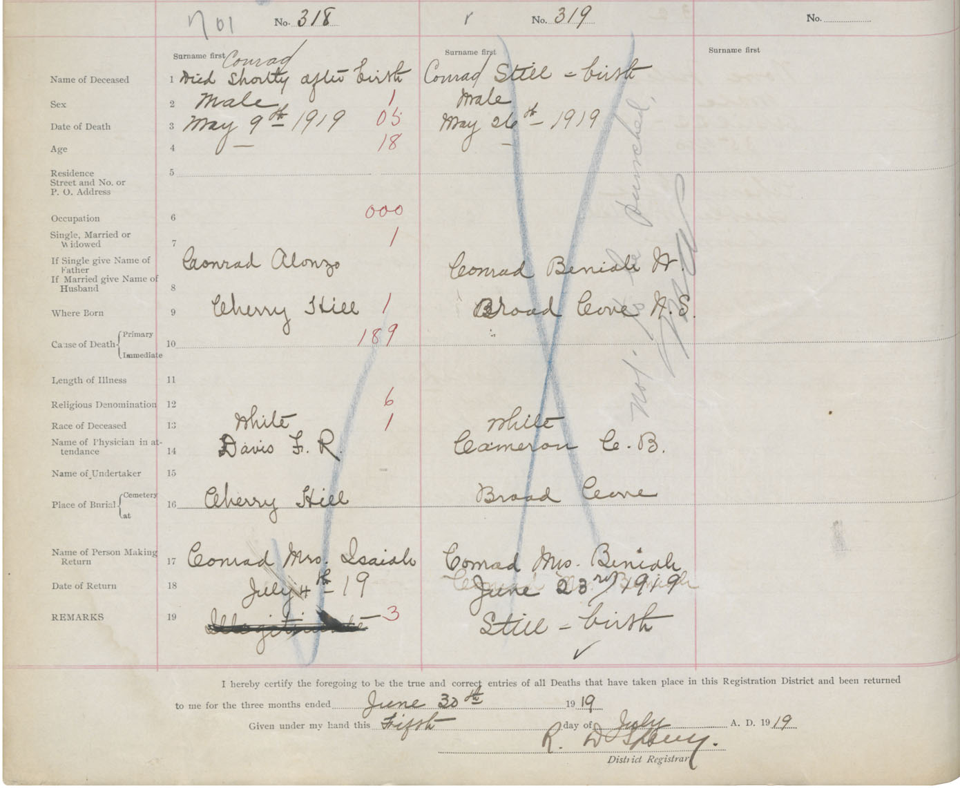 Death Registration: Year: 1919 book: 43 page: 186 number: 701