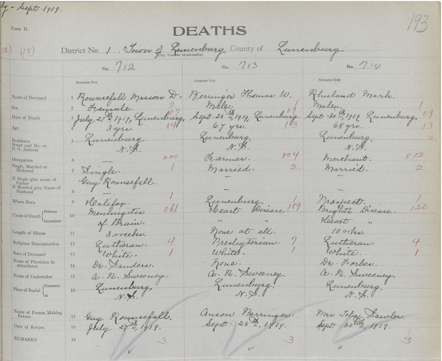 Death Registration: Year: 1919 book: 43 page: 193 number: 714
