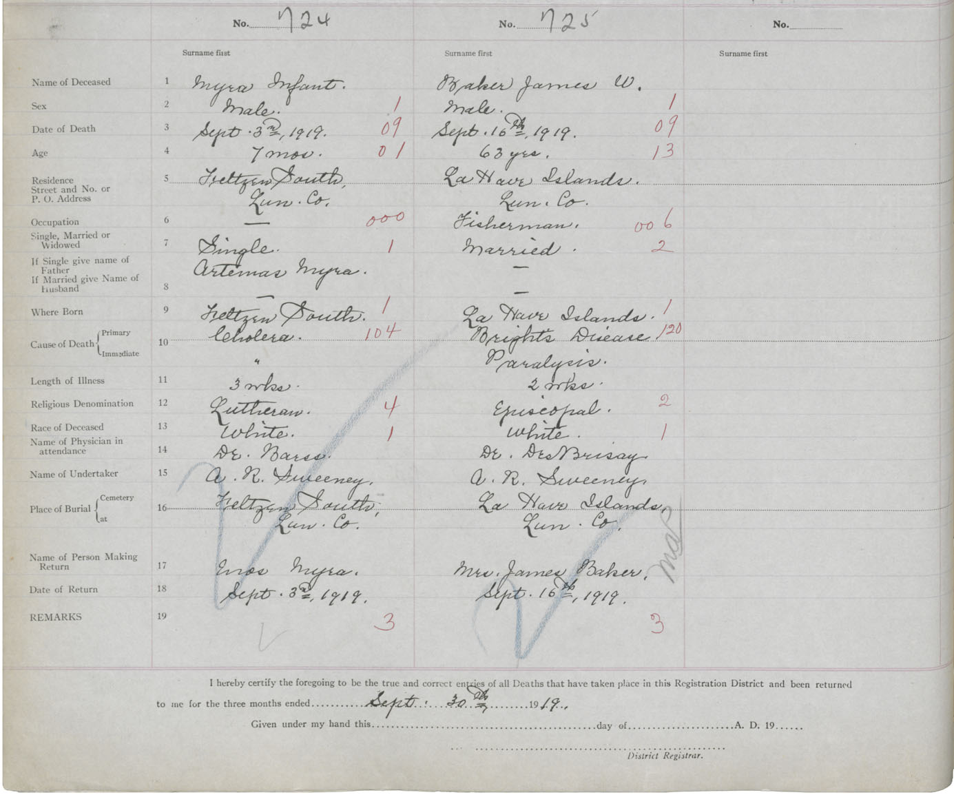 Death Registration: Year: 1919 book: 43 page: 196 number: 725