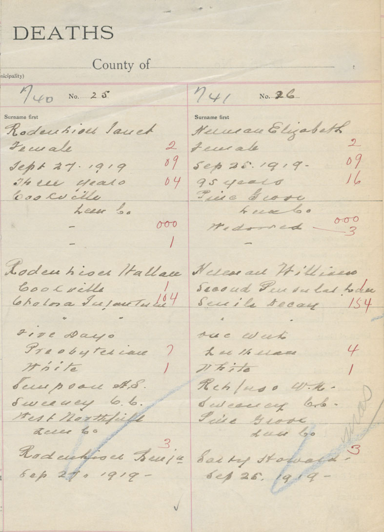 Death Registration: Year: 1919 book: 43 page: 10199 number: 741