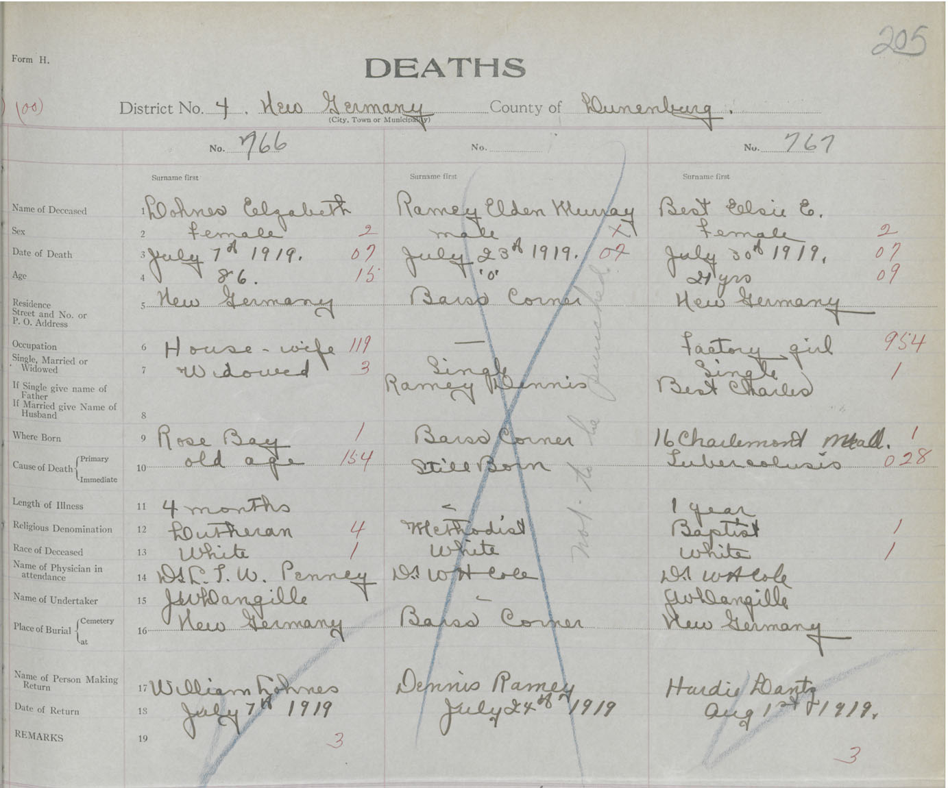 Death Registration: Year: 1919 book: 43 page: 205 number: 767