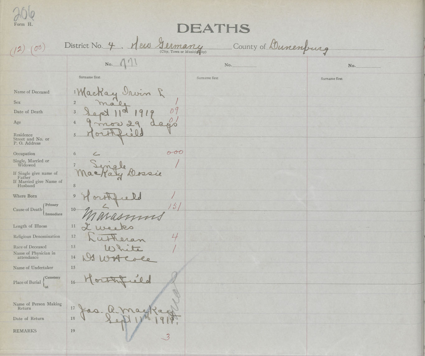 Death Registration: Year: 1919 book: 43 page: 206 number: 771