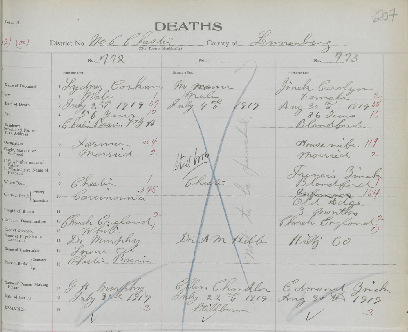 Death Registration: Year: 1919 book: 43 page: 207 number: 773