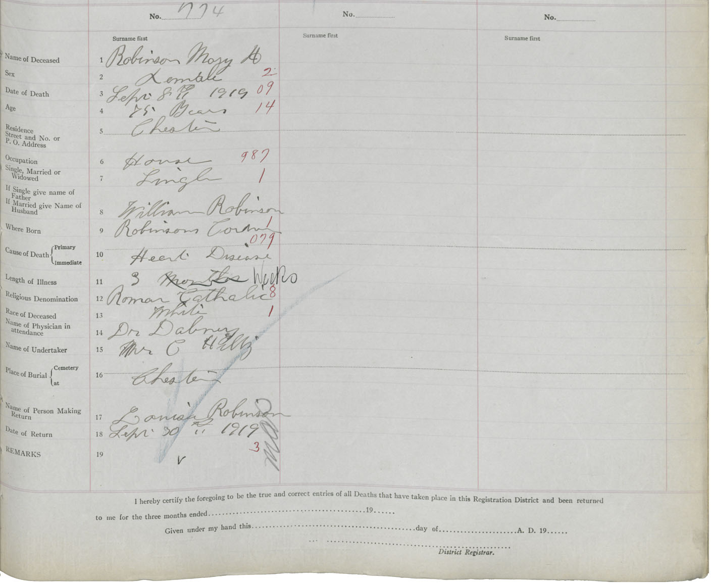 Death Registration: Year: 1919 book: 43 page: 207 number: 774
