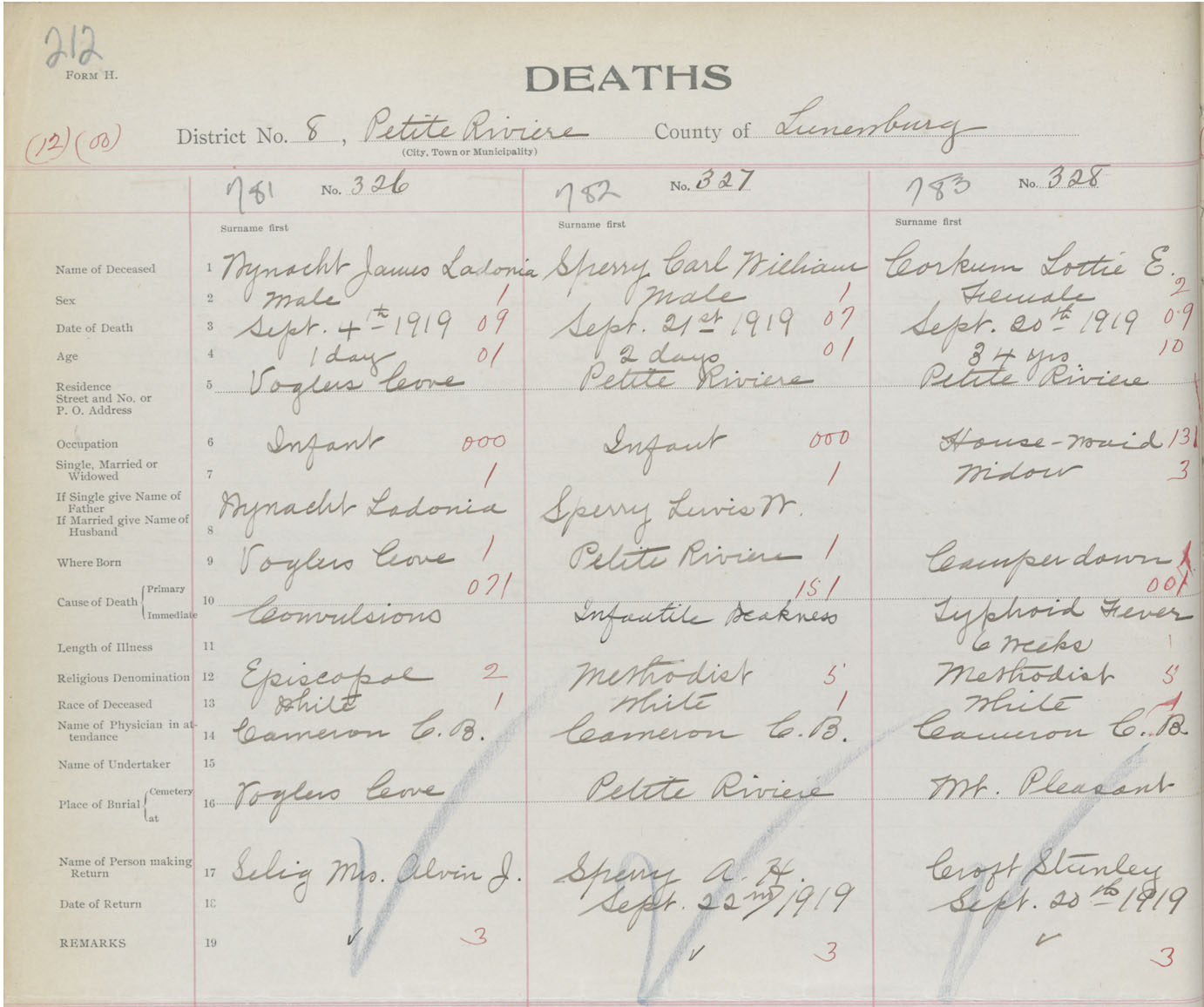 Death Registration: Year: 1919 book: 43 page: 212 number: 783