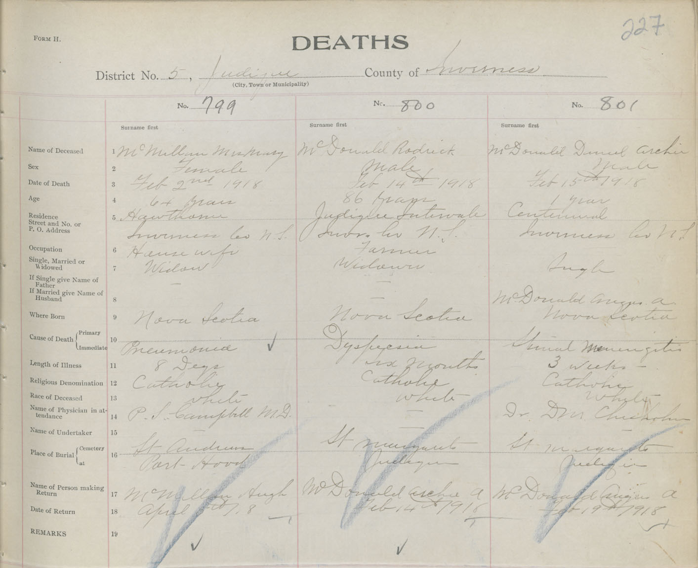 Death Registration: Year: 1918 book: 43 page: 227 number: 801