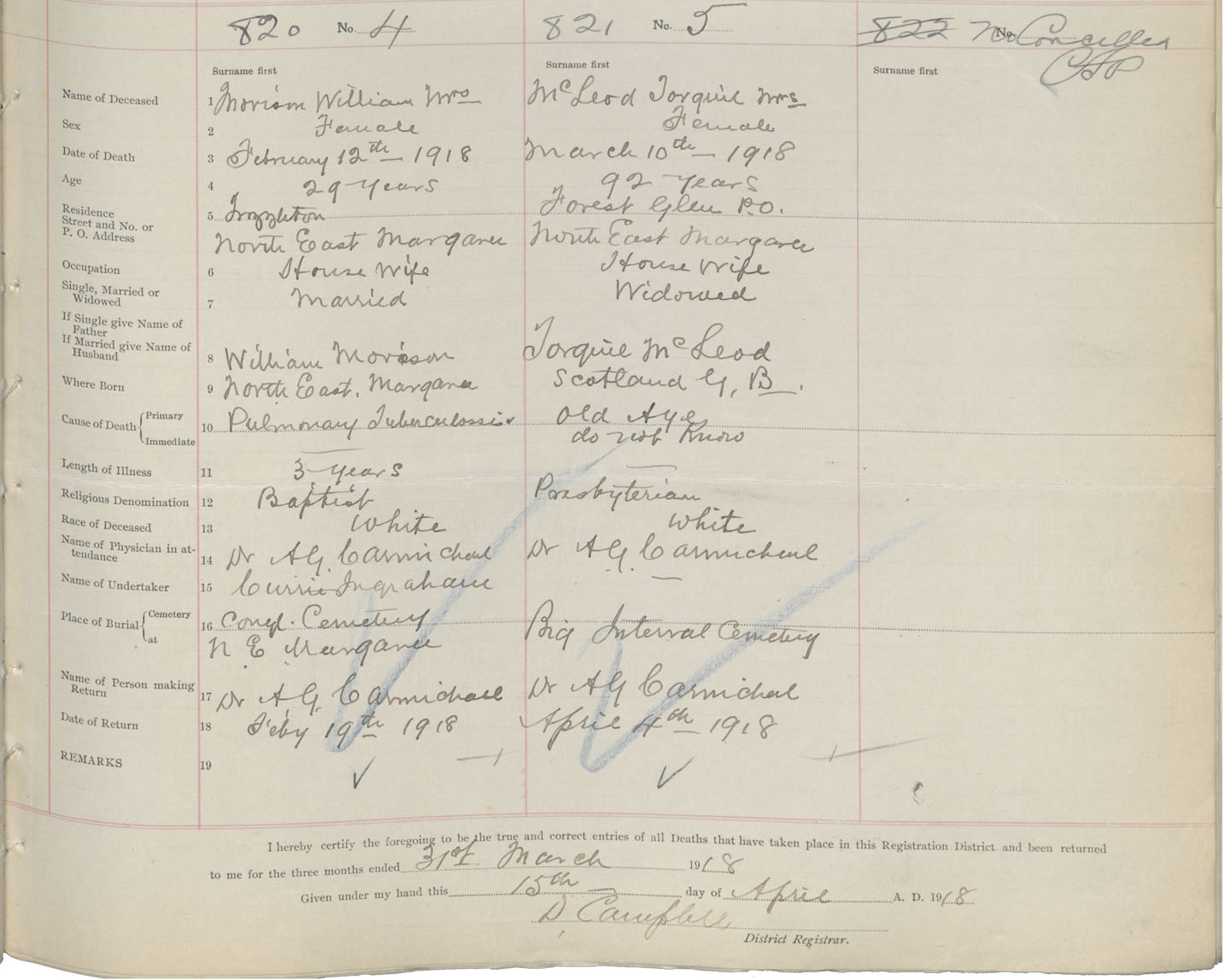 Death Registration: Year: 1918 book: 43 page: 238 number: 821