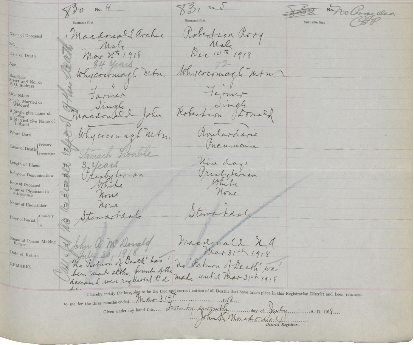 Death Registration: Year: 1918 book: 43 page: 241 number: 830