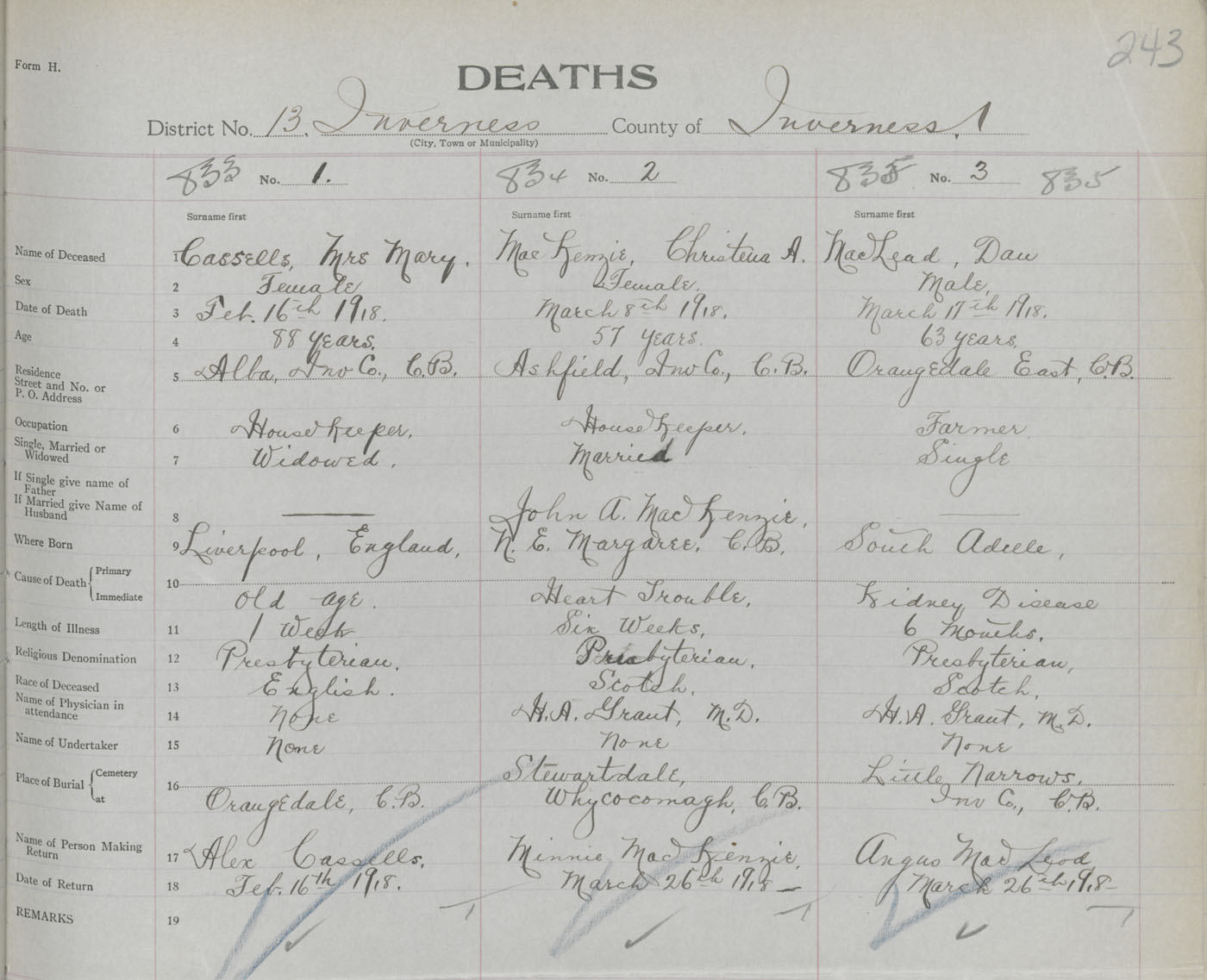 Death Registration: Year: 1918 book: 43 page: 243 number: 833