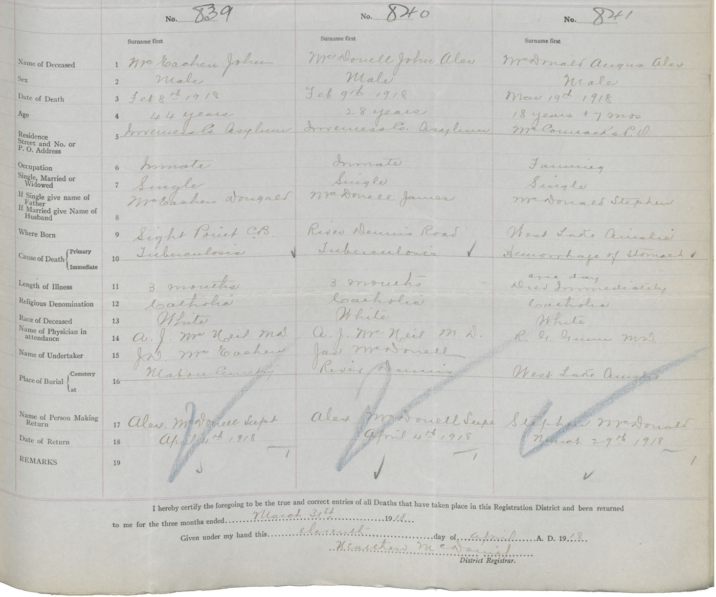 Death Registration: Year: 1918 book: 43 page: 245 number: 839