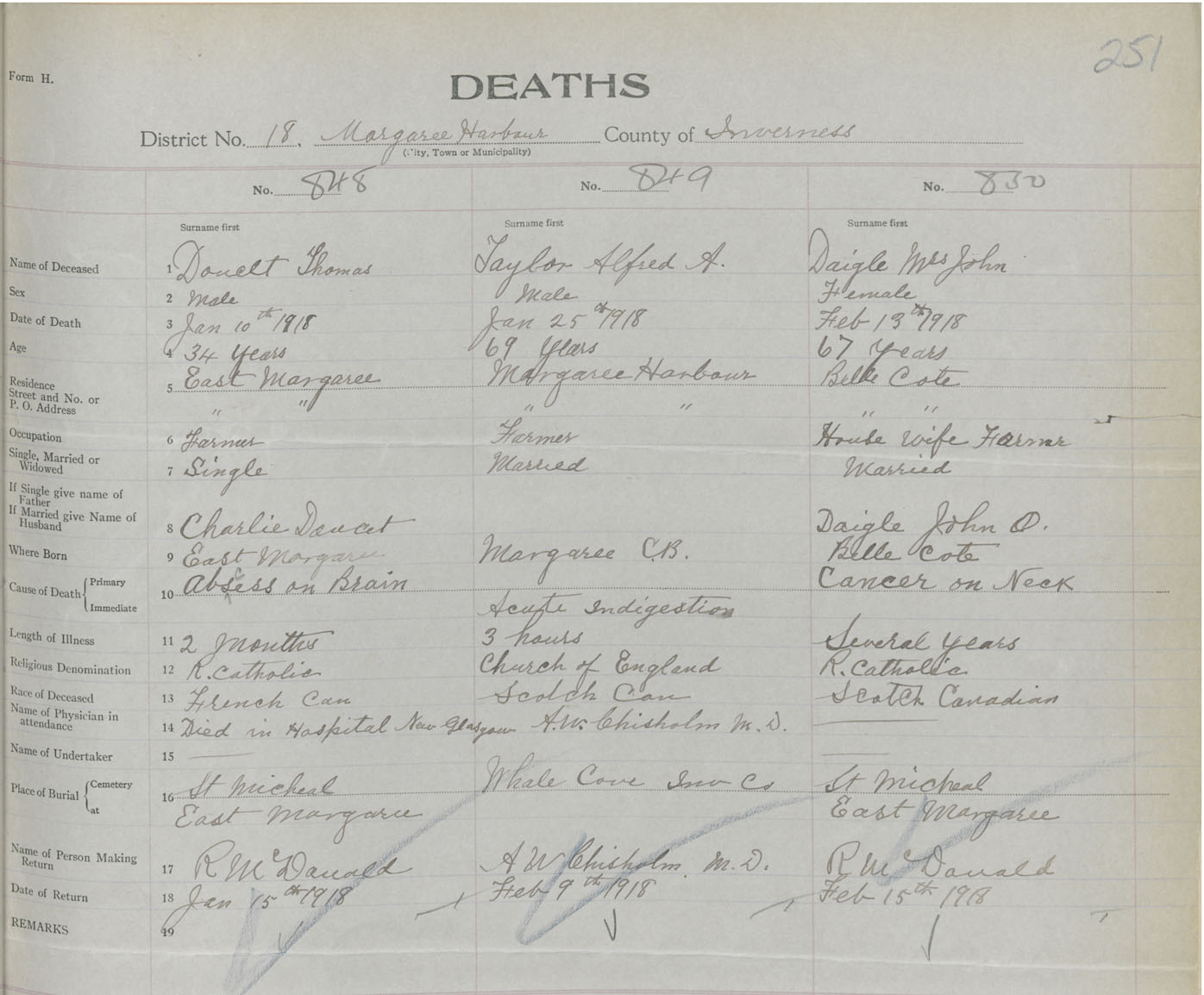 Death Registration: Year: 1918 book: 43 page: 251 number: 848