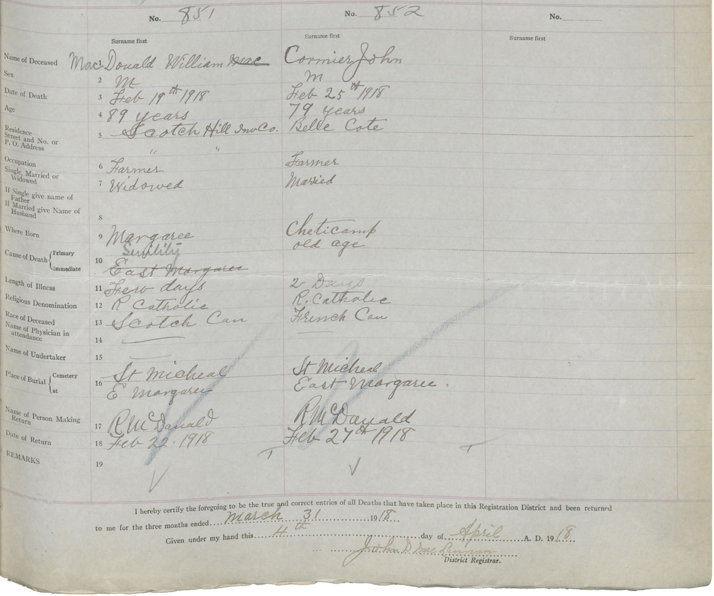 Death Registration: Year: 1918 book: 43 page: 251 number: 851