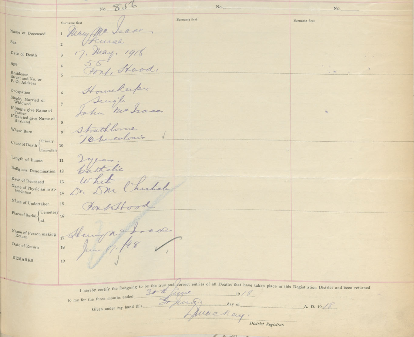 Death Registration: Year: 1918 book: 43 page: 253 number: 856